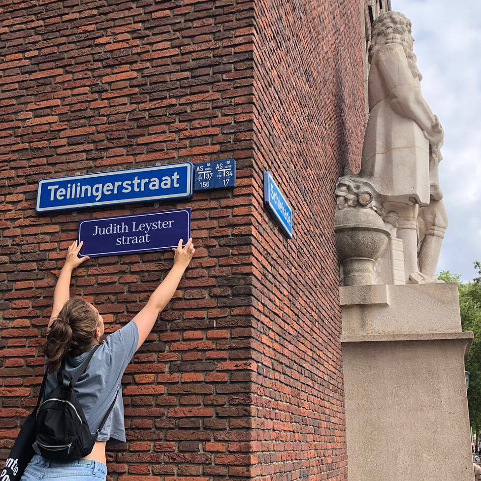 #meervrouwopstraat de Bovengrondse • participant in feminist demonstration for more female street names