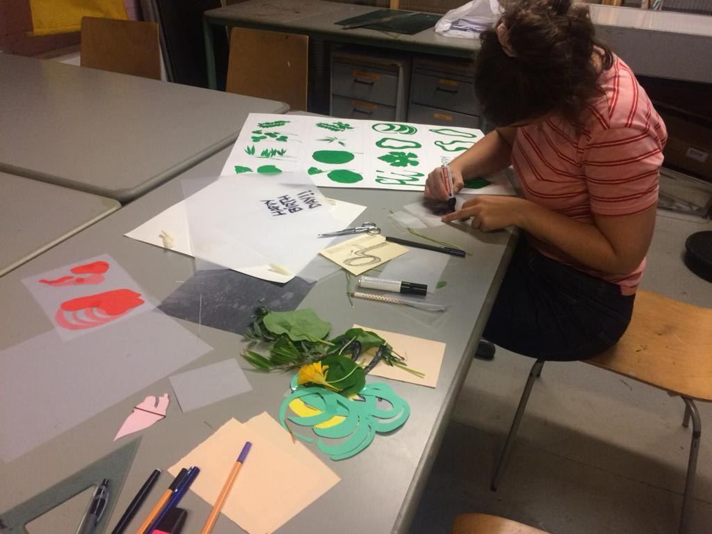 Silkscreen print made by exposing dried leaves on the screen