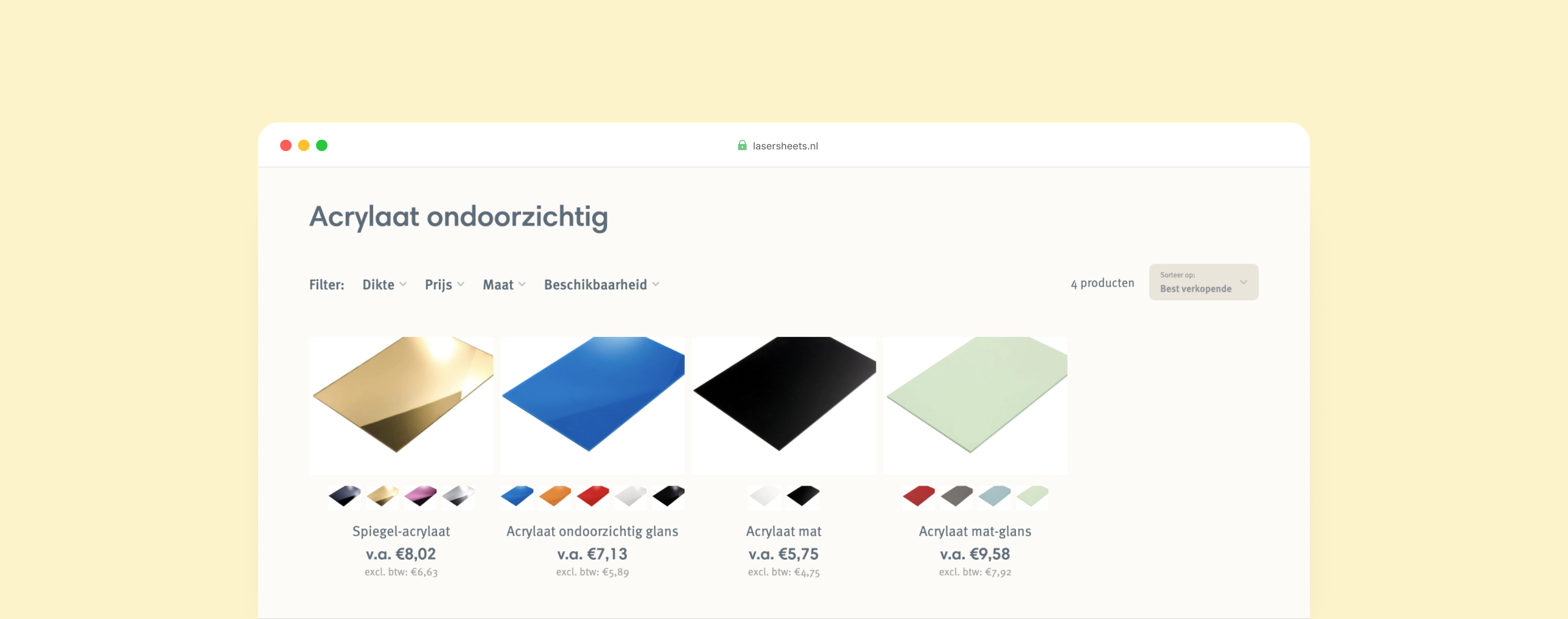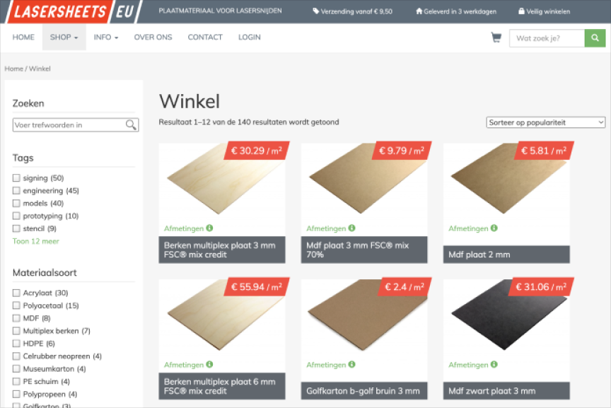 Lasersheets is growing at an increasing pace since the launch of the new site. We noticed more traffic to the site and the average values of orders are rising. Due to optimisation for SEO, higher conversion rates through better UI and quicker marketing efforts.