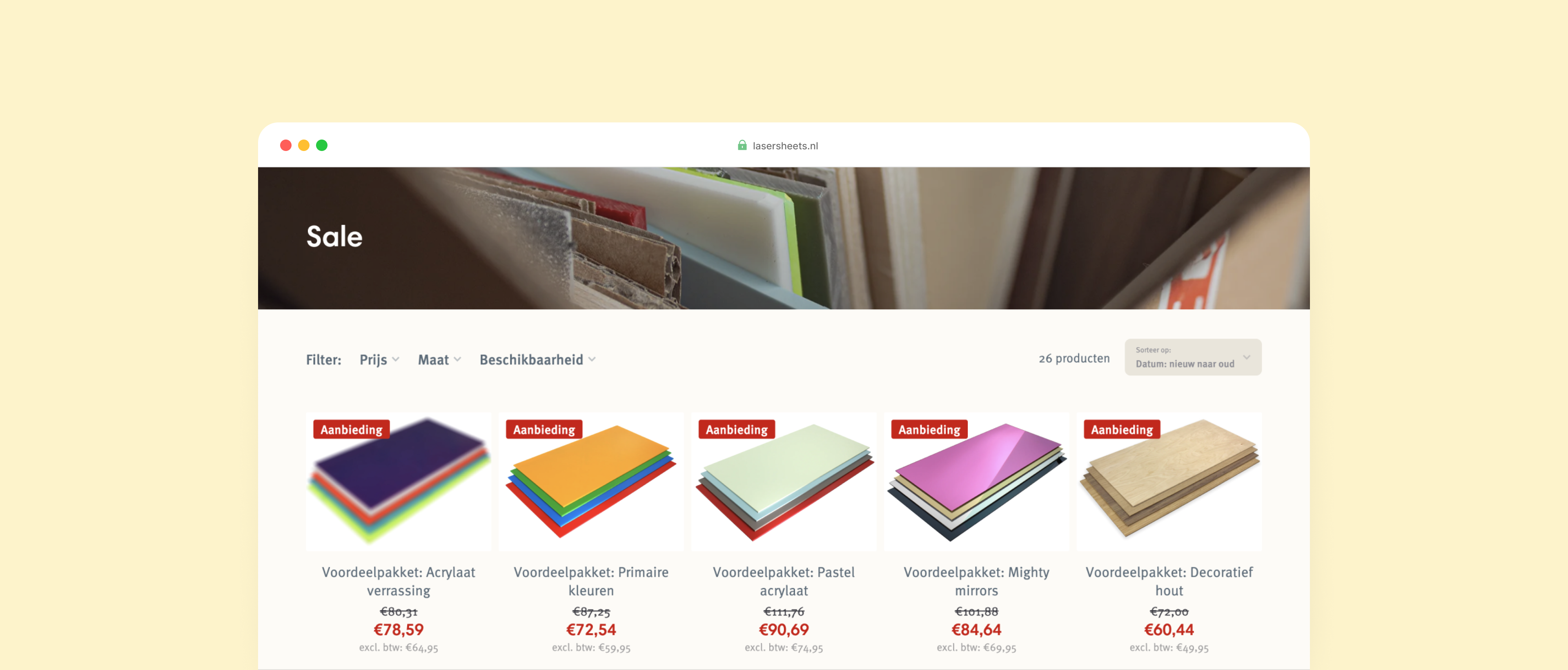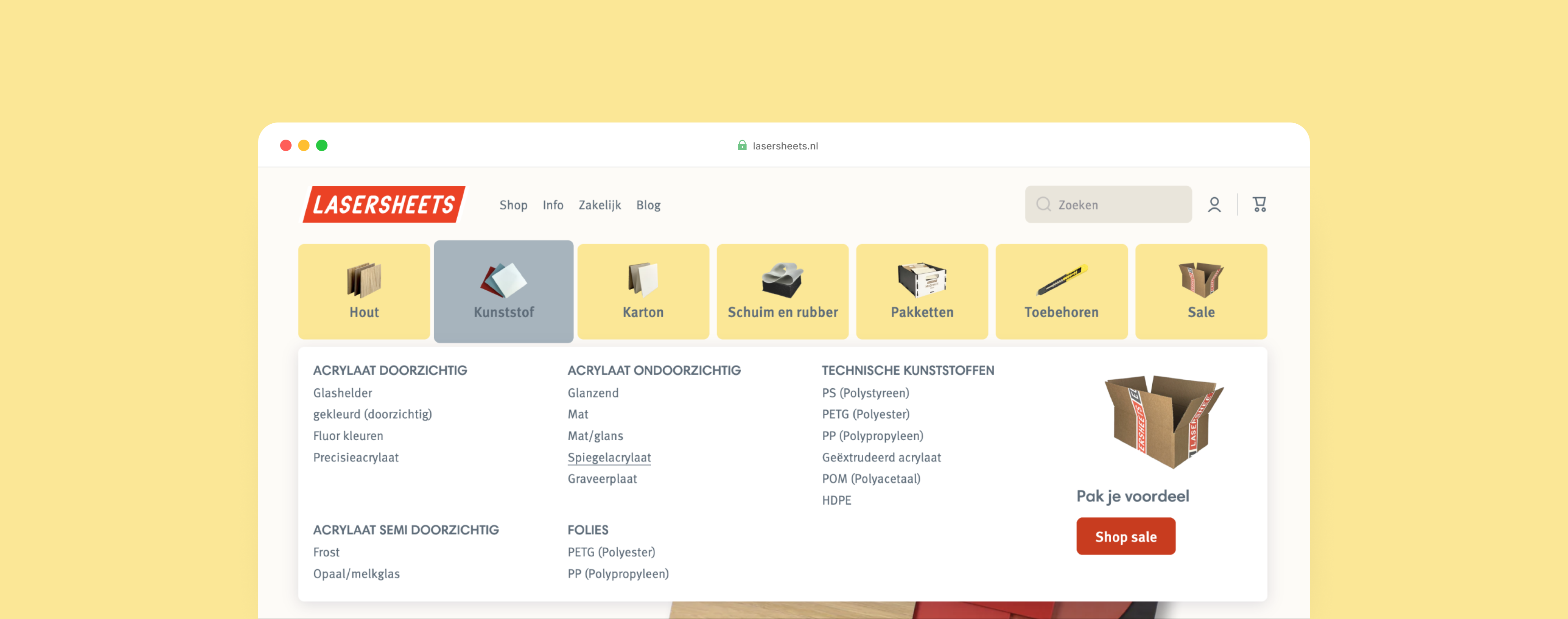 The webshop migrated to a stronger e-commerce platform to fit the growing business and to improve marketing efforts. The old site was not only technically but also visually outdated, we re-imagined the brand Lasersheets.